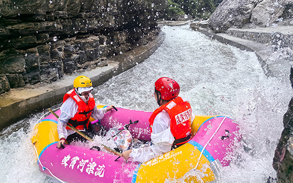 漂流分为上下两段,上半程勇士峡谷漂7.5千米,狂野刺激,河道险峻,大小跌水急滩多达50余处,自然落差180余米,约3小时的漂流,是舒缓压力,忘却烦恼的互动式游乐项目,体验与浪搏击的快感,带你决战巅峰;下半程风情休闲漂约5千米,漂流动静相宜,在缓流中荡漾,品味山水柔情的浪漫情调,约2小时的漂流,体验青山绿水的幽静,人与自然的和谐,是老少皆宜的"万人迷"漂流。